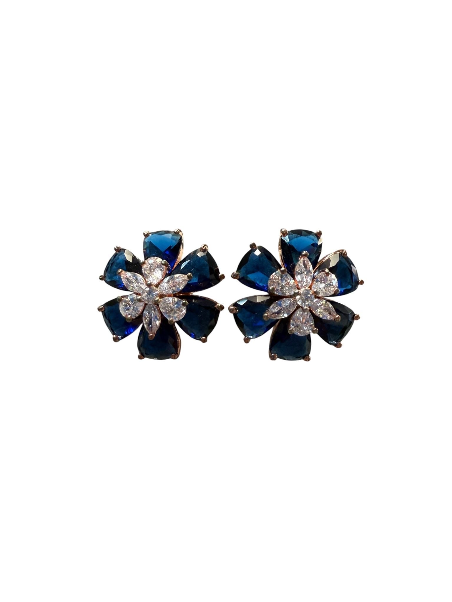 These Blue Flower earrings showcase stunning blue and white cubic zirconia stones in a delicate flower shape. Made with metal nickel and lead-free materials, these stylish studs are only suitable for pierced ears.