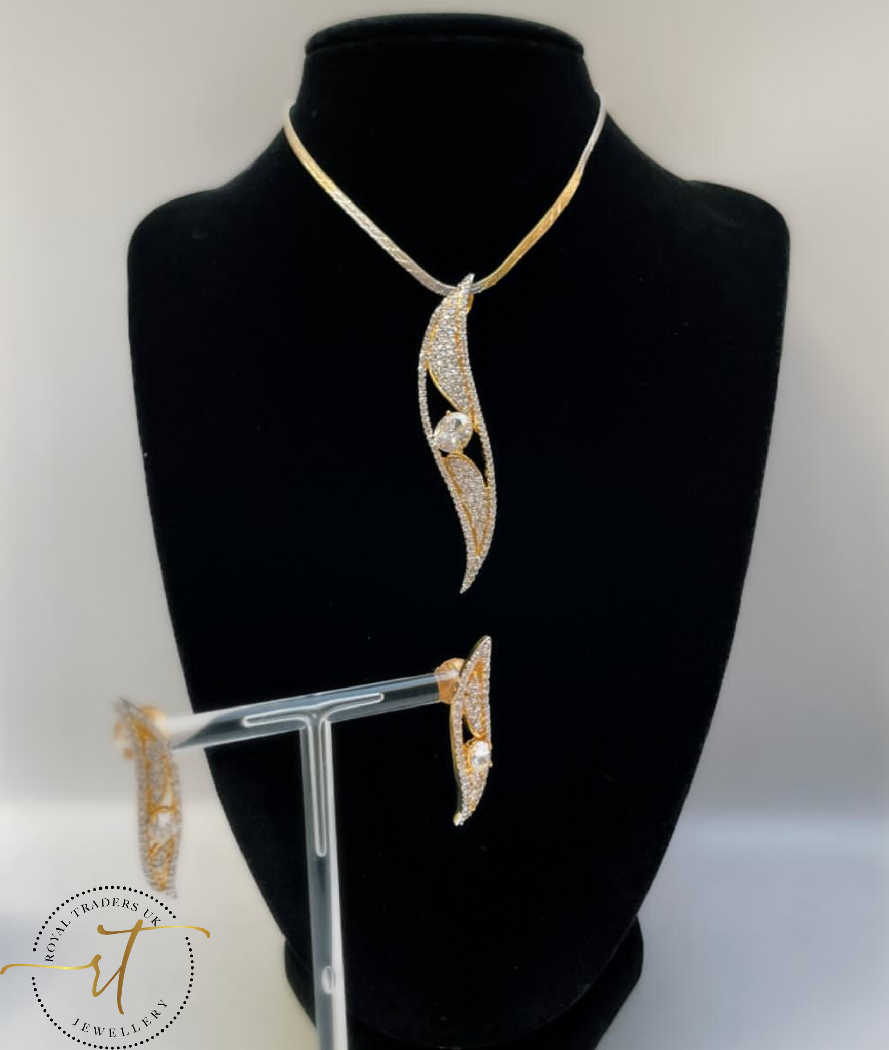 Gold and Silver Beautiful American Diamonds Earrings and necklace set.