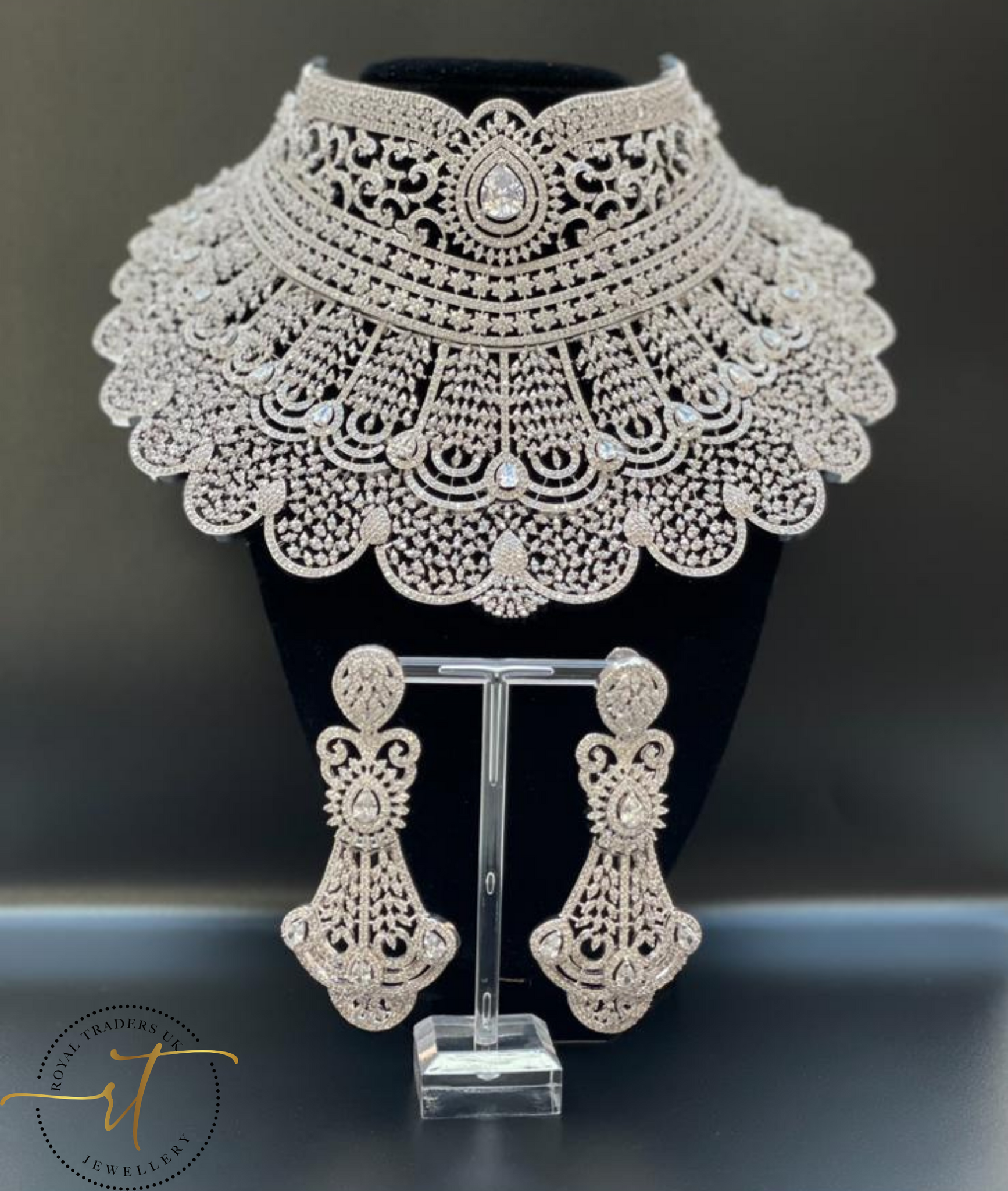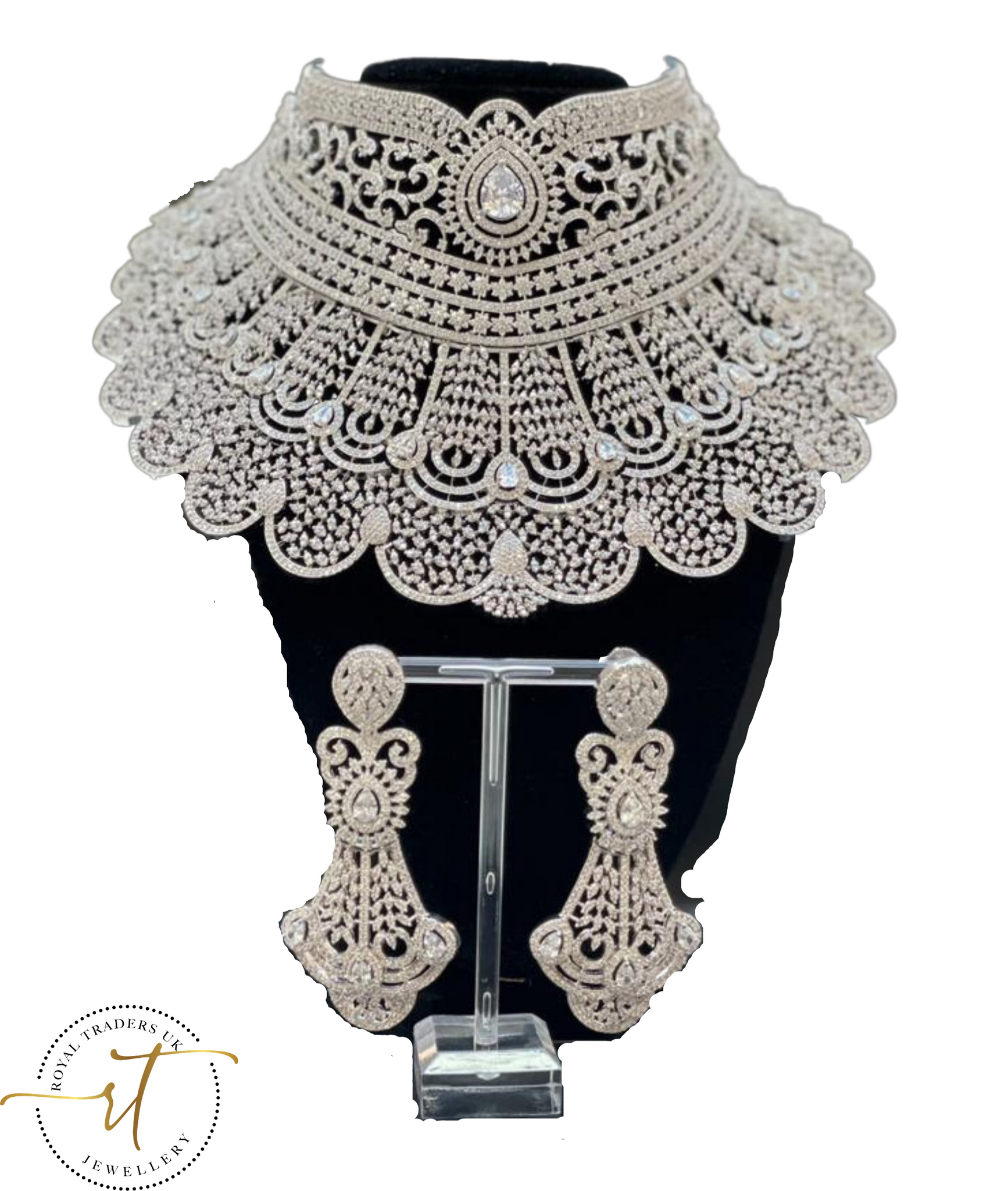 Bella - Exclusive Stunning Necklace and Earrings American Diamond Set
