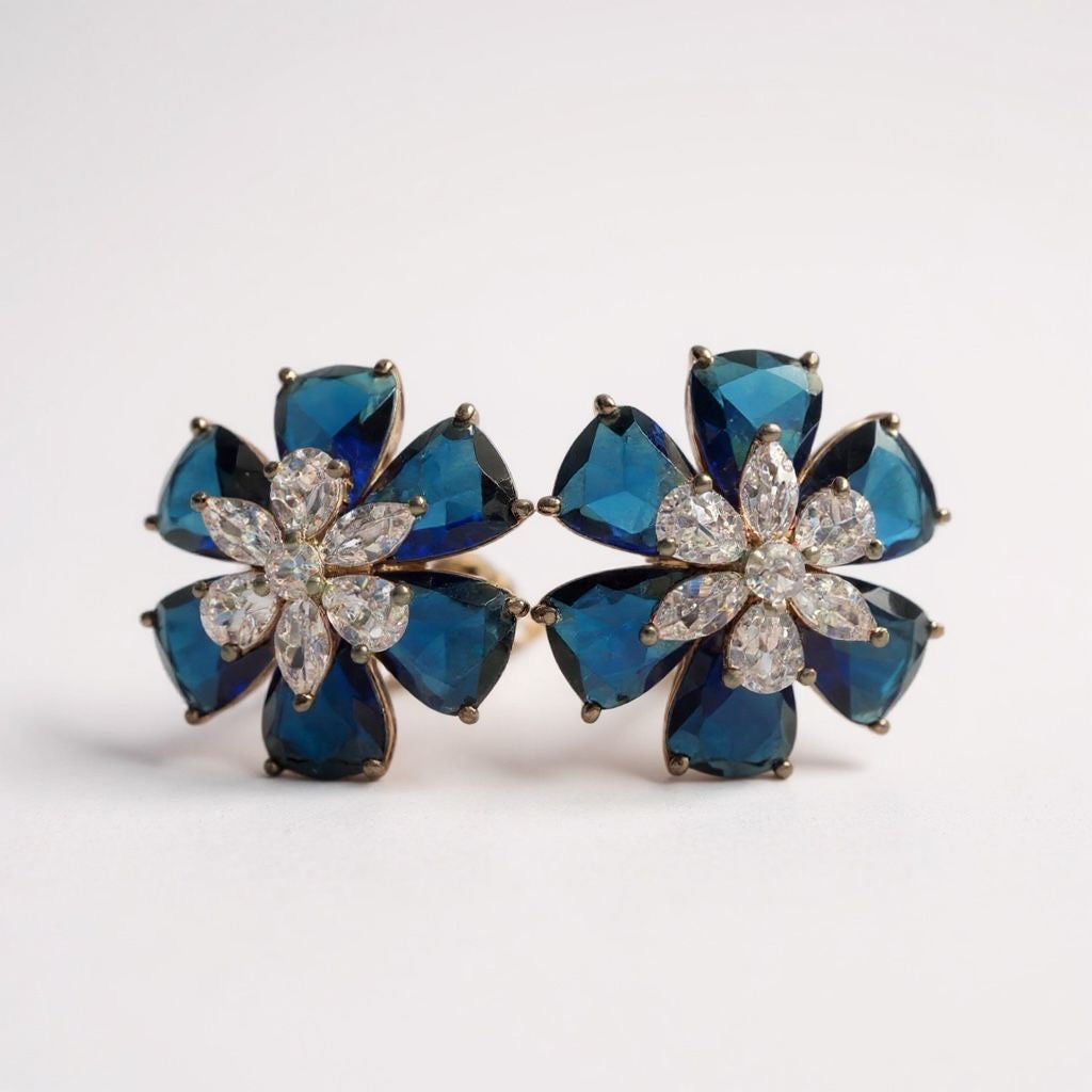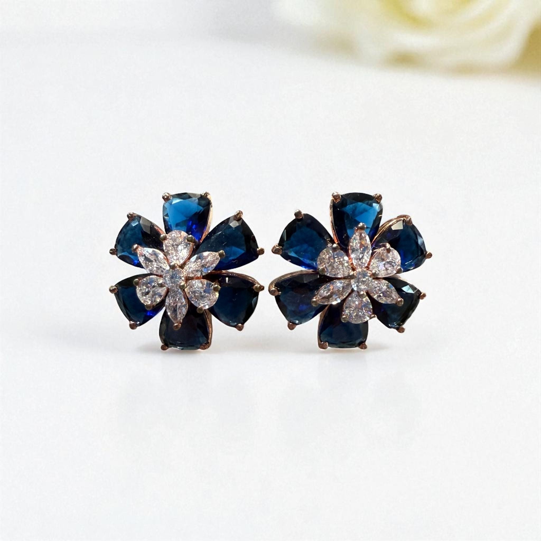 These Blue Flower earrings showcase stunning blue and white cubic zirconia stones in a delicate flower shape. Made with metal nickel and lead-free materials, these stylish studs are only suitable for pierced ears.