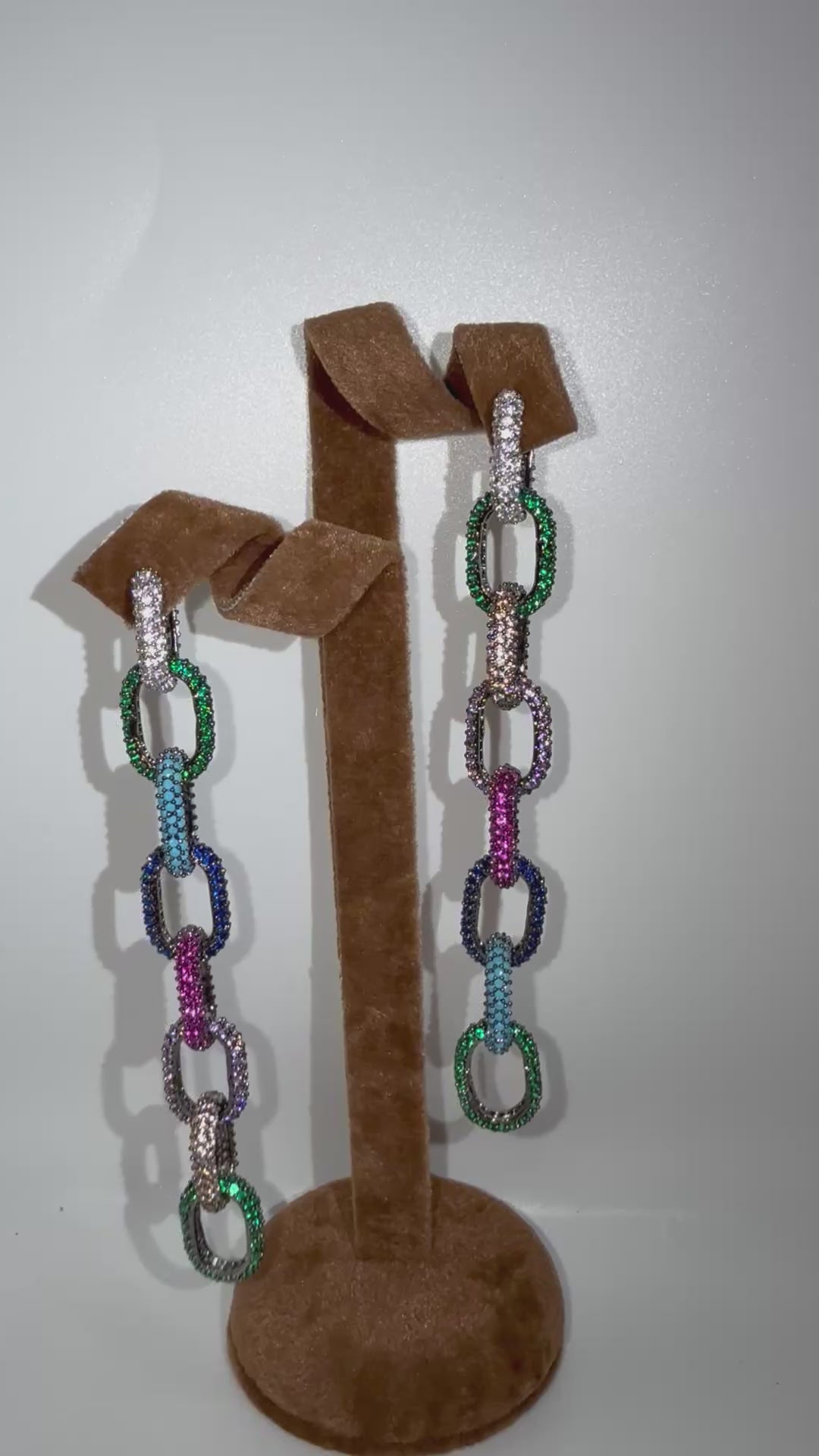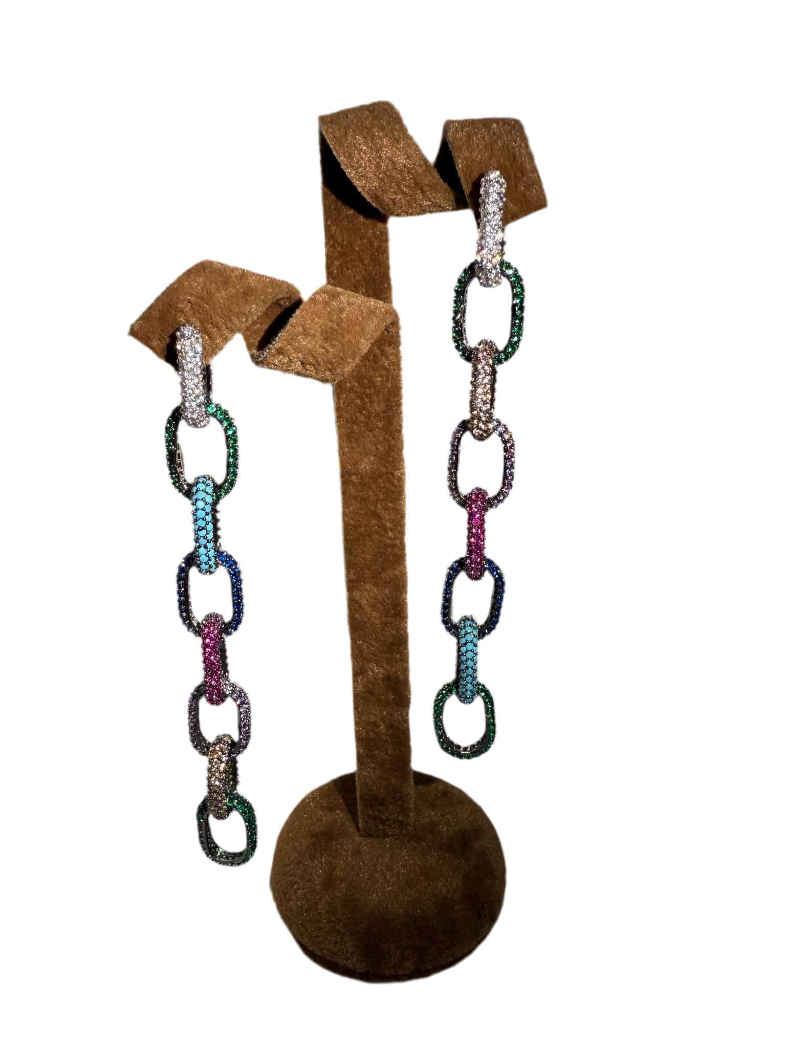 Long dangling multicoloured sparkling earrings