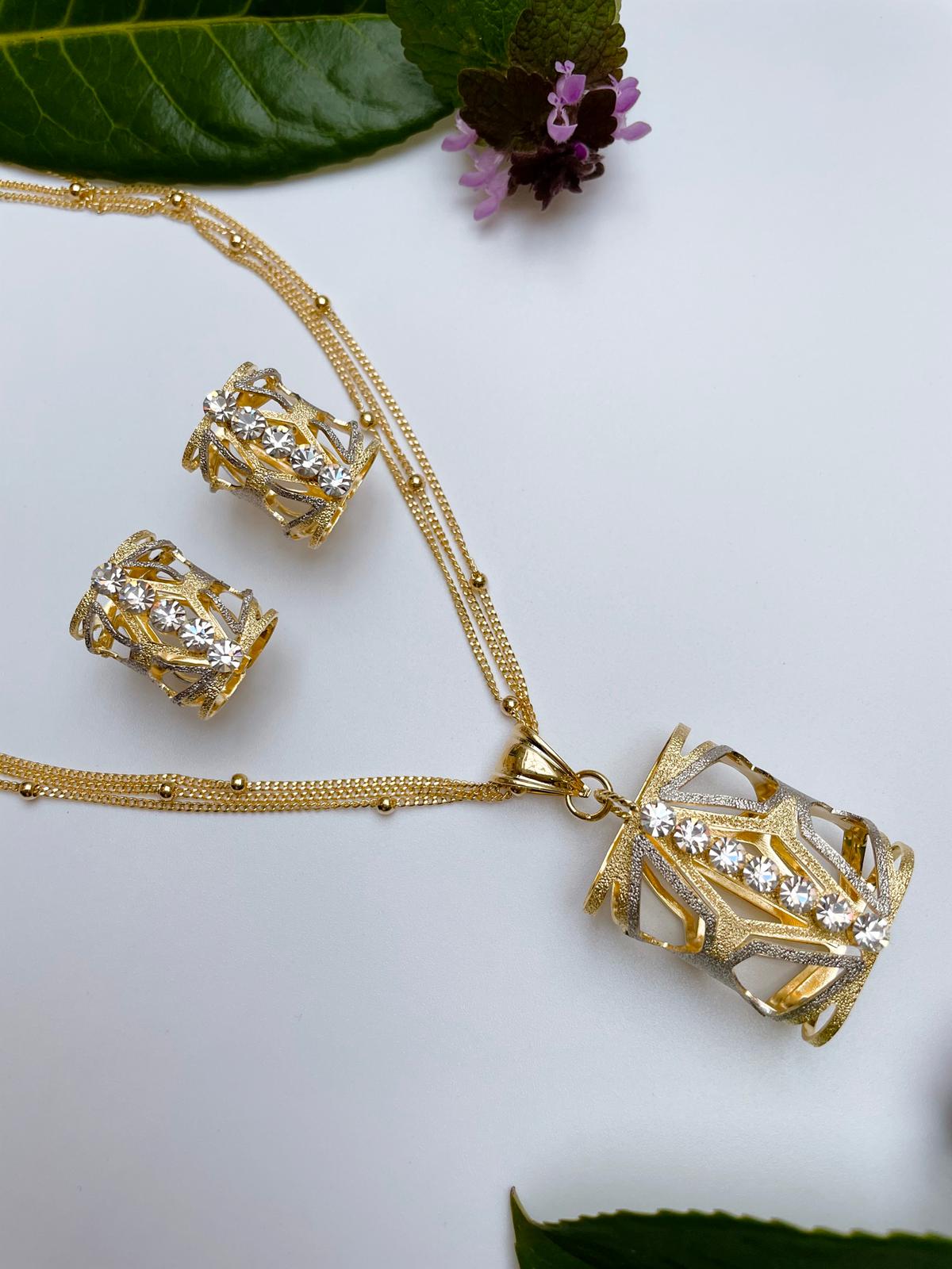 Gold plated 17cm 3 layer chain and pendant with matching earrings.